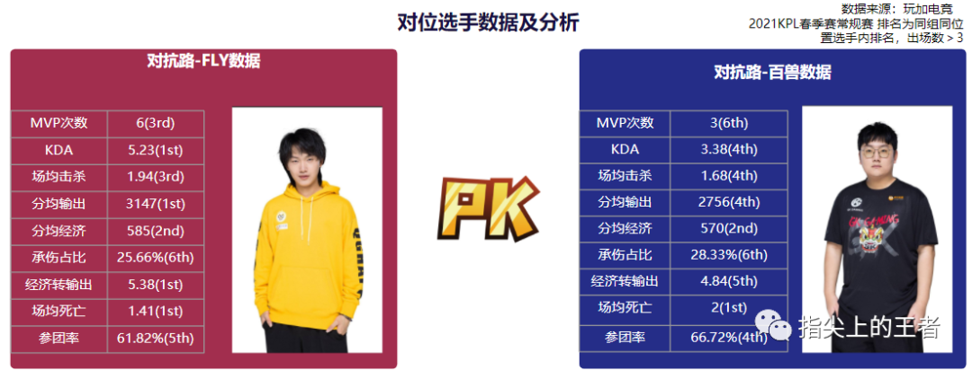 两个边路的数据对比,可以看到,fly的数据几乎全方位压制百兽,fly从第二轮才回归,拿到了6次mvp,而一直跟队的百兽只有3个,fly的各项数据都稳稳压制百兽,且场均死亡数据全联盟第二(第一是向鱼,没想到吧),这就非常离谱了。