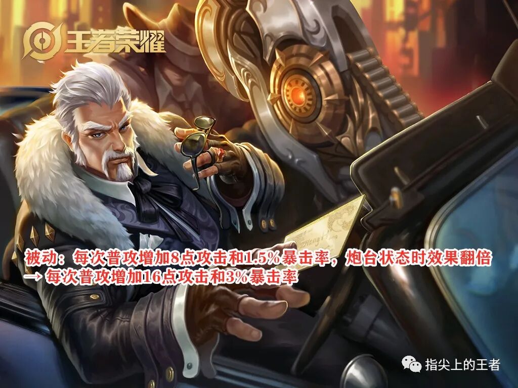 黄忠的被动技能,普攻可增加攻击力以及暴击率,最多能够叠加五层,而炮台状态下是翻倍提升的,换算出来就是最高可获得40点物理攻击,以及7.5的暴击率,而开大的状态最多能增加80点物理攻击以及15%的暴击率。(冷知识,普攻状态下叠加的层数,开大后需要重新叠加)