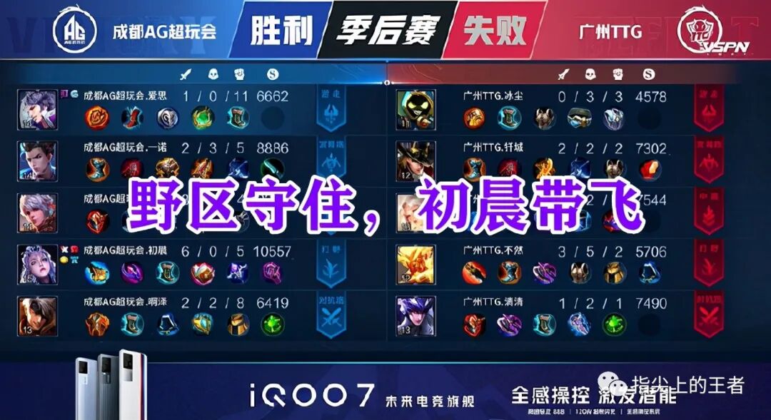提到了初晨,不知道大家有没有发现一点,现在的AG在有了初晨之后,几乎每一场比赛的胜负都是看初晨这一局发挥的状态,当然了,有一场初晨露娜全程刷钱的情况毕竟是少数,而今天的比赛里,除却第三场和第五场,输掉的比赛无一不是野区崩盘,前期炸裂,所以我们看到AG现在的强,真的建立在初晨能否发挥出水平的基础上,而不是一诺是否能正常发育。