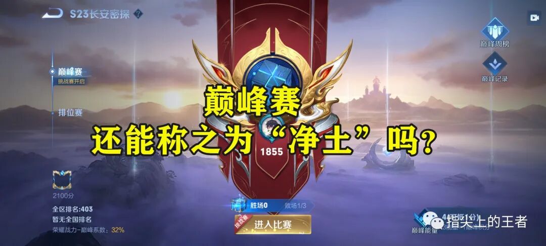 大家好我是指尖,如果问你,王者荣耀中哪里才能真正体现自己的水平,你会怎么说?排位?巅峰赛?