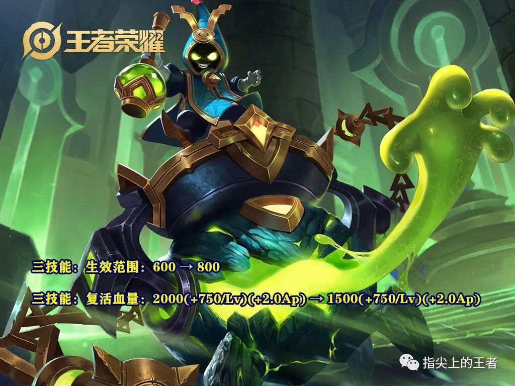 增加了大招的生效范围,削弱了大招复活后的血量,怎么说呢,这个调整虽然看起来是平调,但我觉得是要分情况看的,正常来说,太乙真人的职责就是跟着c,关键时刻给他复活站起来,所以太乙基本是和c寸步不离的,但是考虑到平时要游走,且团战先手控制,或者舌头舔了出去,和c位距离增加,关键时刻无法给到大招,这个时候只能看着队友死,那么大招的距离提升效果就体现出来了。