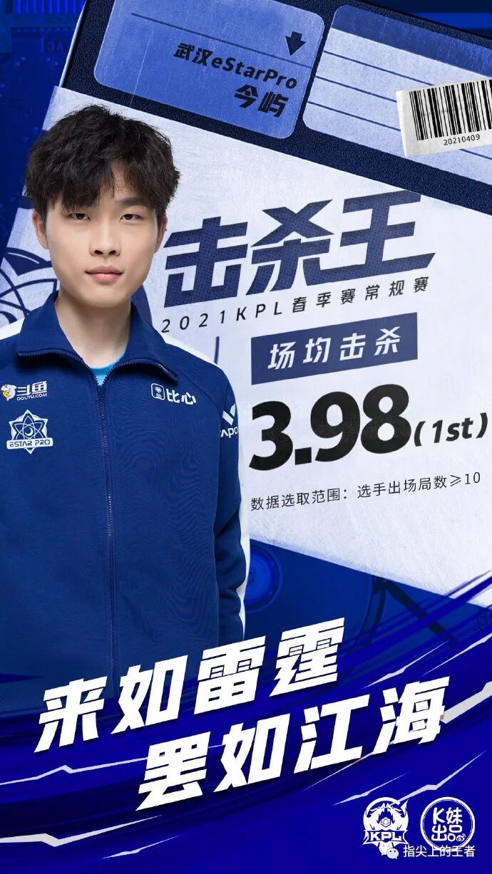 而去年顶替纵情的今屿,在当时的表现真的可以说是毫无建树,甚至平庸打了几场,没想到这个赛季迎来了蜕变,在整个常规赛成了击杀最多的选手,场均击杀无限接近四个,这在所有选手中是排名第一的,虽然和战队的成绩相关,但是战队的成绩怎能和他无关呢?estar能打出这么好的成绩并不算意外,但今屿我觉得真的算一个黑马选手。