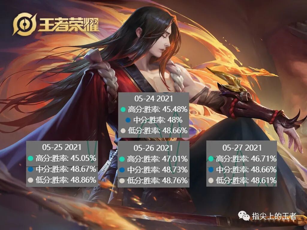大家好我是指尖,之前正式服更新,对五名英雄进行了平衡性调整,关于调整的内容可以说是众说纷纭,有的认为加强,有的认为削弱,但我觉得胜率,是体现英雄加强还是削弱最好的体现方式,所以五个英雄三天后的胜率我给大家弄来了,一起来看看吧。