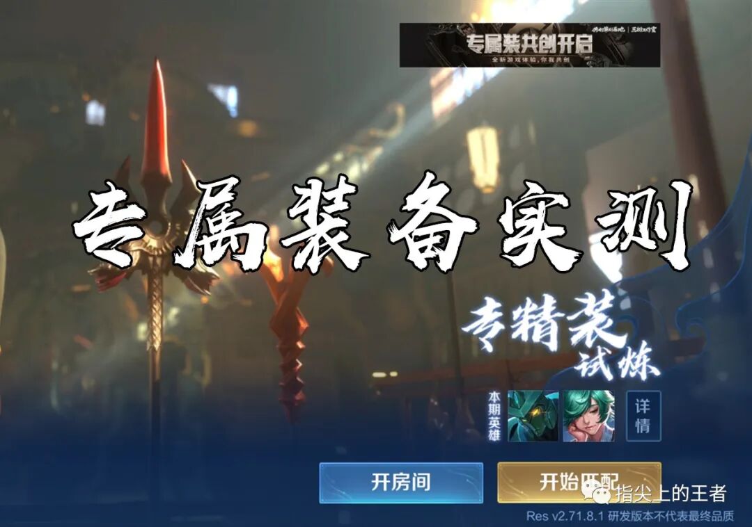 因为专属装备的强度是需要测试的,所以在体验服出了一个特定的模式,常规的排位是没有这个专属装备的,进入游戏在大厅中的活动界面进入才行,如果有小伙伴想测试,别直接钻排位里哦。