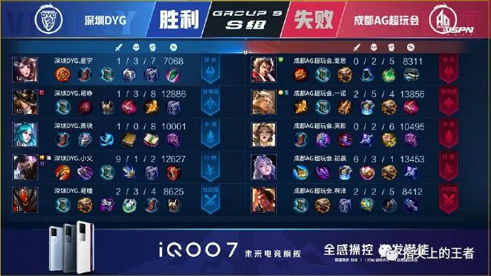 DYG这场比赛用3:2的成绩击败了AG超玩会,这算得上坏消息中唯一的好消息了,实际上,即便这场比赛DYG赢下了,进入胜者组也仅仅是一丝希望,所以队员加上教练本身也不该有什么负担,在输掉两场之后小局积分已经不可能来到第四名,因此提前就宣布进入败者组。