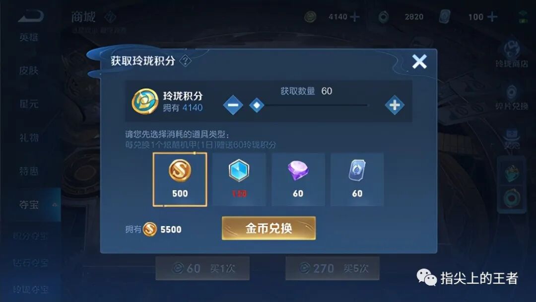 而获得玲珑积分可以用金币、铭文碎片、钻石、点券来获得,相对应的道具和积分分别是: