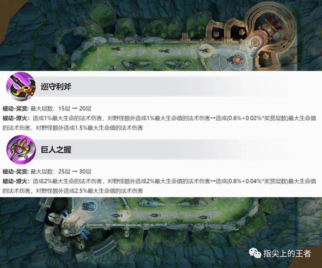 这个调整的意义就是,边路英雄想要获得更好的buff效果,需要打更多的野怪,但显然边路没有那么多的野怪给你打,那么你出肉刀的价值就会降低,因为你每一层野怪的buff带来的收益比之前更低了。