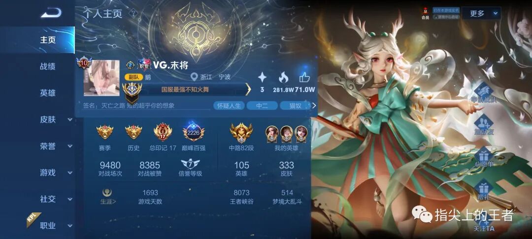 本赛季巅峰赛180场,65.6%胜率,综合评分82.5,可见末将的天赋还是在的,综合评分高就可以说明情况了,想对比,易瞳真的是靠场次叠上去的。