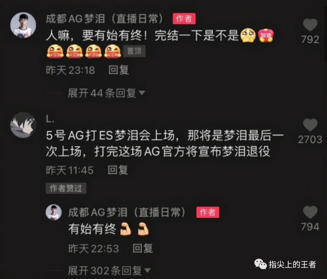 梦泪的职业生涯没有太多荣誉,却深深烙印在了玩家们的心理,最后一战希望能赢下比赛,不要带着遗憾,落败而归。