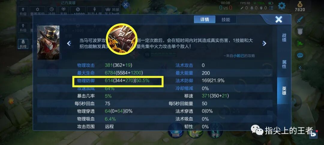 假设目标有一件防具,按照不祥征兆的270防御计算,加上英雄本身的防御力是610左右(拿马可做例子),被固定穿透削减之后的防御还剩240点。