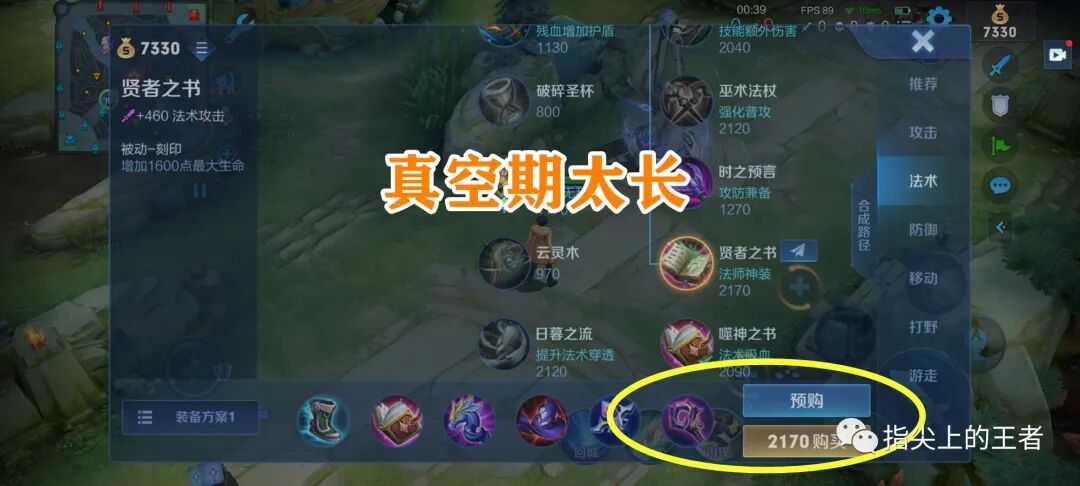 鞋子、回响、面具、帽子、法穿杖、贤者之书,很多法师的装备都是这一套,其中面具和法穿杖可能会换成吸血书或者日暮之流,可以看到,大多数情况贤者之书要么不出,但凡要出都是放在了最后一件,而这件装备的合成件是两个大棒,剩下一个格子只能出一个,那么就意味着你要憋2170金币,一个复活甲的经济才能买出大书,期间只有120法强而已。