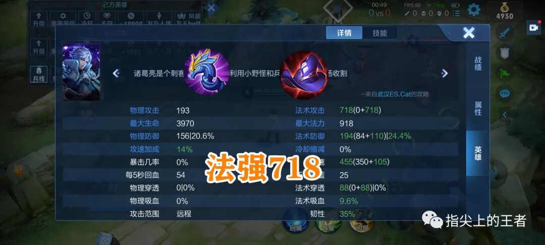 为了让装备常规化,我选择了回响加帽子,大多数出帽子的英雄首件装备都是回响,此时法强是718。