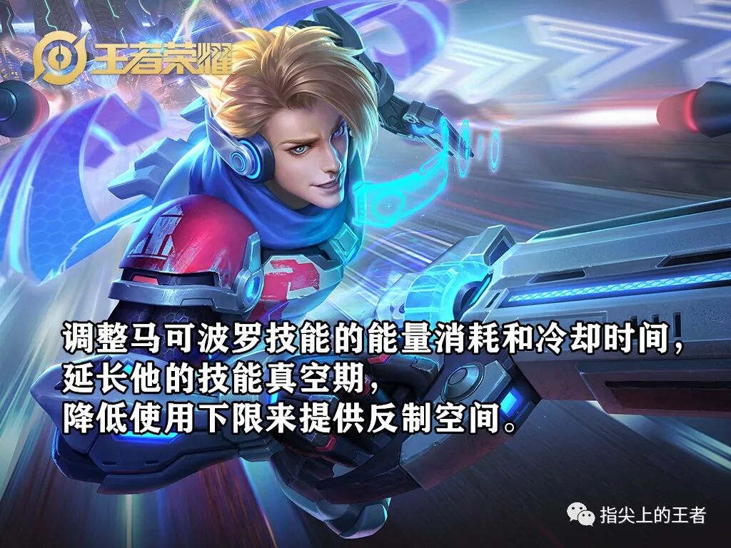 增加12技能的能量:这个调整会让马可波罗的消耗再也不是0成本,打中了回复的能量值会更高,但是如果打空了,那么技能的真空期就会延长,因为你没有能量,这影响的除了输出,还有生存,因为一旦没能量,23技能也都无法使用,所以对大神而言还好,对初学者来说英雄使用成本再次提升。