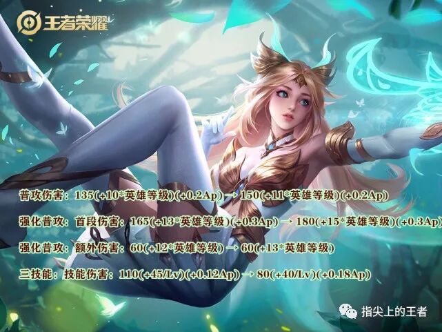 大招的伤害之前体验服从480降到了420,上线正式服的时候保守了一点,回调到了440,而经过版本洗礼之后,发现强度有点太高,所以这次基础伤害直接一步到位,砍到了400,成长伤害降低25点,所以满级大招单次的伤害相较于正式服降低了90点,对于需要频繁刷大的露娜而言,这波调整是很伤的。