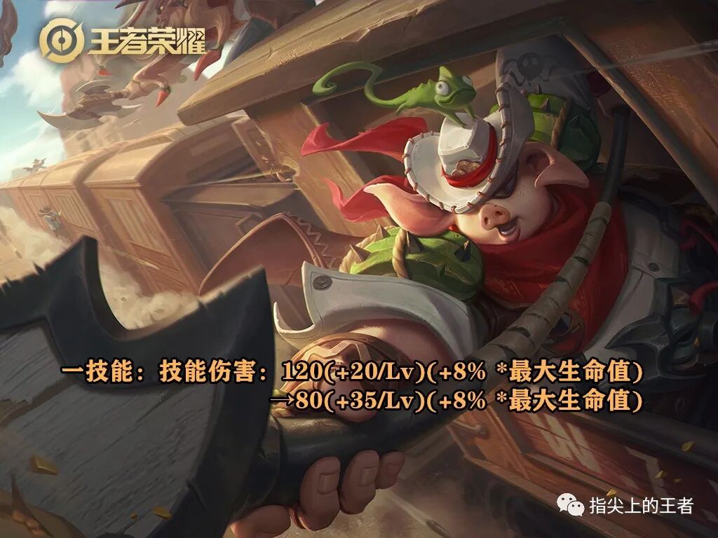 上次对八戒的英雄回血比例降低了5%,这次又对1技能进行了调整,可以看到,1技能的基础伤害降低,增加了成长伤害。