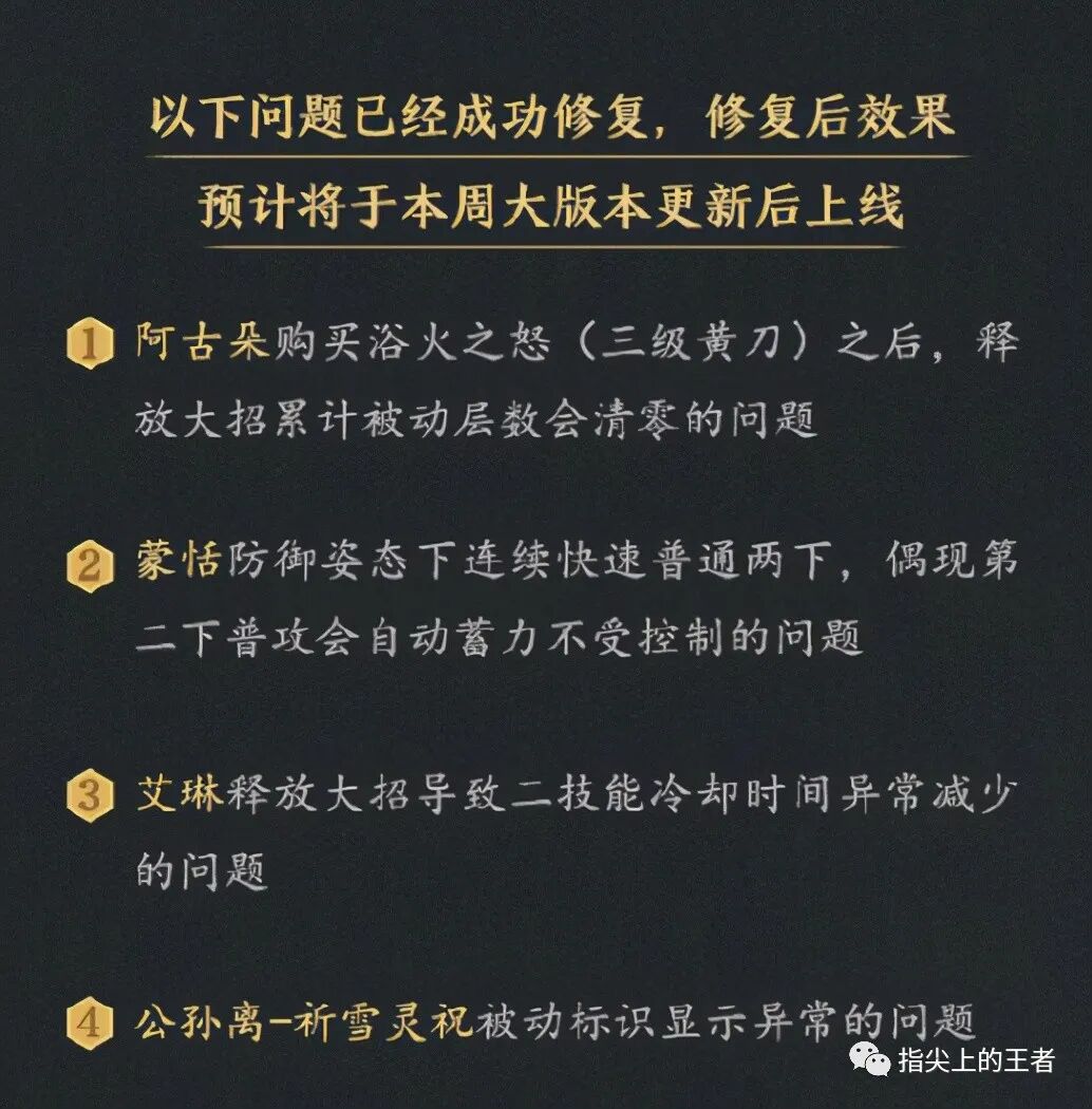 另外艾琳大招对2技能冷却的影响,公孙离新皮肤被动显示的问题也在本周更新后解决。
