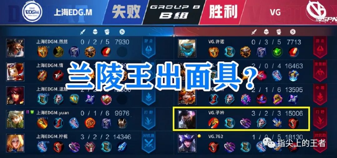 不过第二场比赛中,在结算面板中我们看到了奇葩的一幕,兰陵王作为一个爆发的刺客,居然出了一个连法师都只能是消耗英雄出的痛苦面具,这是怎回事呢?
