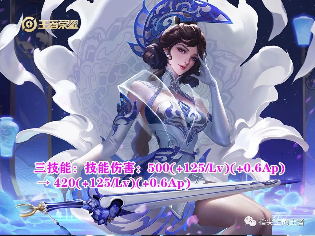 嫦娥的调整和之前一样,降低了2技能的5点伤害,影响比较大的是前期,2技能如果贴脸加地上的印记都打满一共是28段,但实际使用的时候不可能打满,所以伤害总量上并不会有太明显的差距,但是这点伤害对前期而言有时候影响不小。