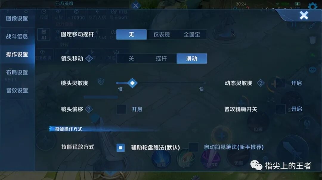 在设置面板中新增了一个“动态灵敏度”的开关,而这个灵敏度对标的是镜头滑动,我们在游戏中,通过右手滑动技能上方来看清更远的战场,但是因为滑动的速度是一致的,有的时候想要看清更远的战场可能用力过猛,有的时候看稍微近一点的战场需要往回拉,所以这个动态灵敏度应运而生。