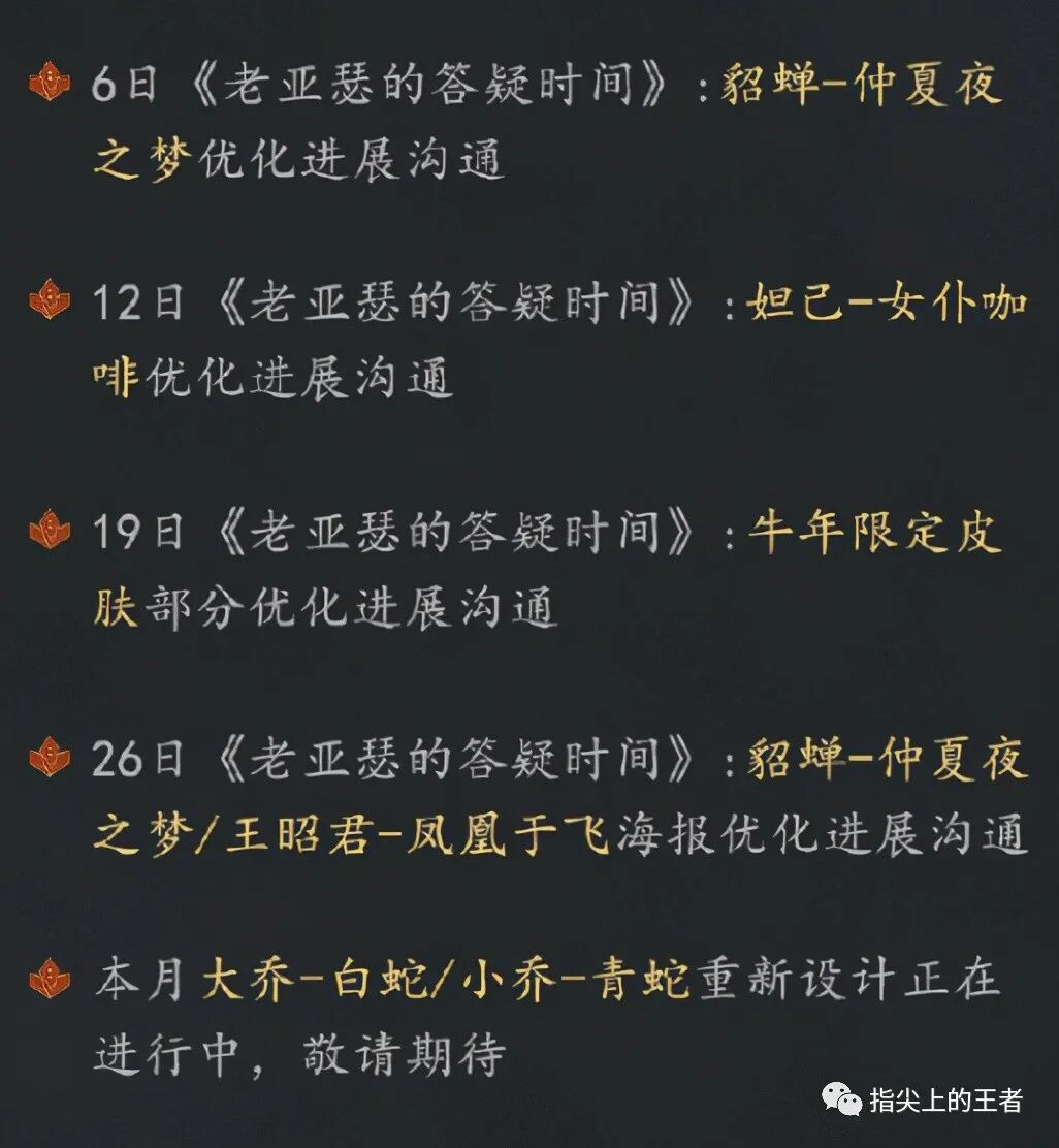 本月的皮肤优化日历来了,貂蝉的仲夏夜之梦,之前爆料出了海报的优化,金色仲夏夜的刘海被玩家吐槽,如今还在优化中,不知道什么时候能够破壳,但是这次的优化应该不止是海报那么敷衍了吧。