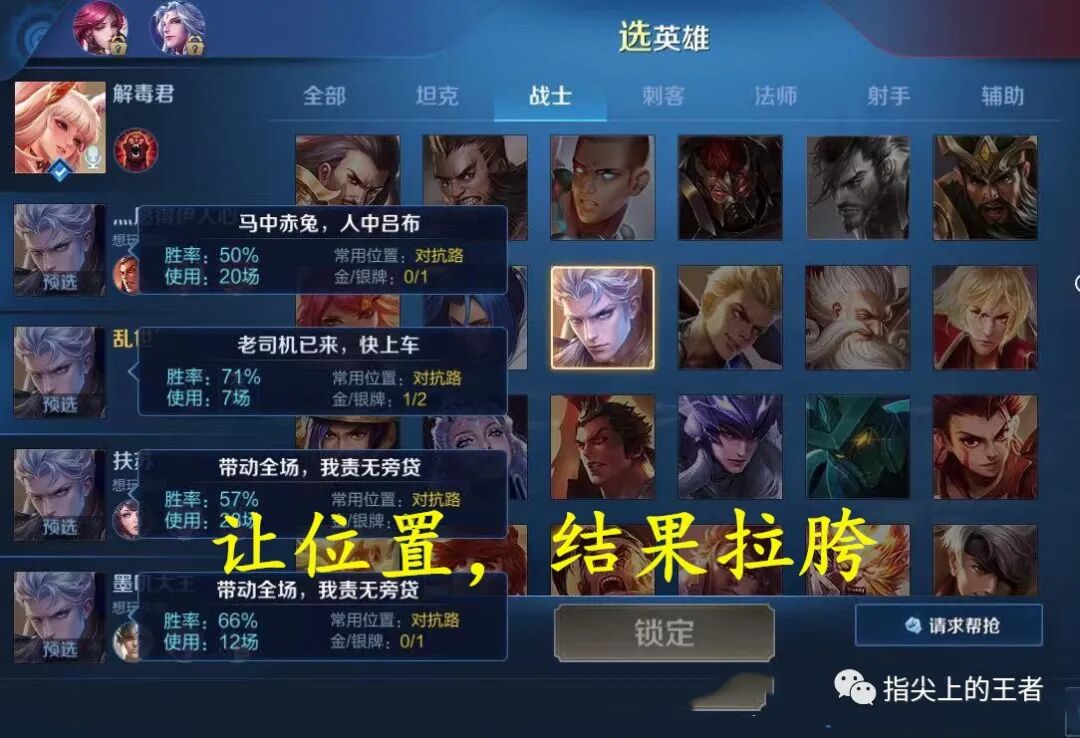 我是这样想,但别人不一定,拿不到自己的英雄就很难受,所以有人选择帮抢,我也一般会帮助,心想,这么着急让我抢,哪怕和我的位置重叠也要试试,肯定是对自己有信心,抱着分奴的态度让了位置,结果进入游戏各种掉点。