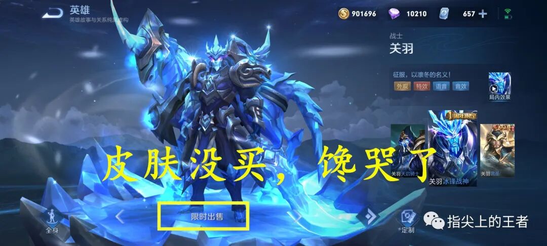 买了皮肤不玩,后悔,当时不玩没买,过后后悔,或许这就是限定皮肤存在的理由,让你在后悔中冲动消费,因为有了后悔的前车之鉴,之后的限定皮肤就抱着“万一”的态度入手,所以在后悔之后,只能等待未来有机会返场,要花原价购买,还把他当成福利,悔不当初,为什么不直接买了呢?