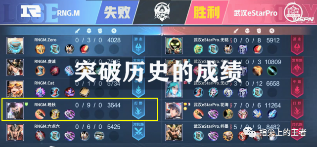 第一场比赛发挥的不错,零将出色发挥还拿到了mvp,不过之后的两场比赛一场比一场离谱,第三场更是打出了耻辱战绩,零龙零塔零人头,11分半 被落下1.8万经济,创下了kpl历史最涝成绩,而被诟病最多的晚秋拿到了0-9-0的豪华战绩,不比当年妖刀云中君弱多少。