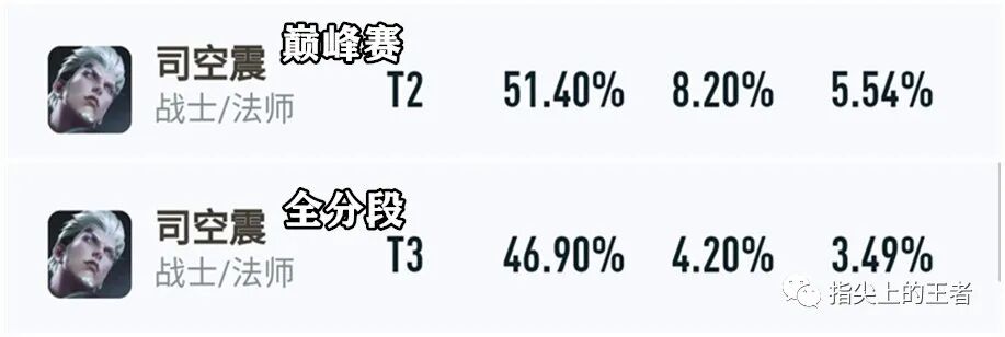 指尖也查了一下尖端局的表现,仍然有接近50%的胜率,所以可以说,司空震的上限不低,但并非顶尖,强度没想象中那么低,的确是可以玩的。