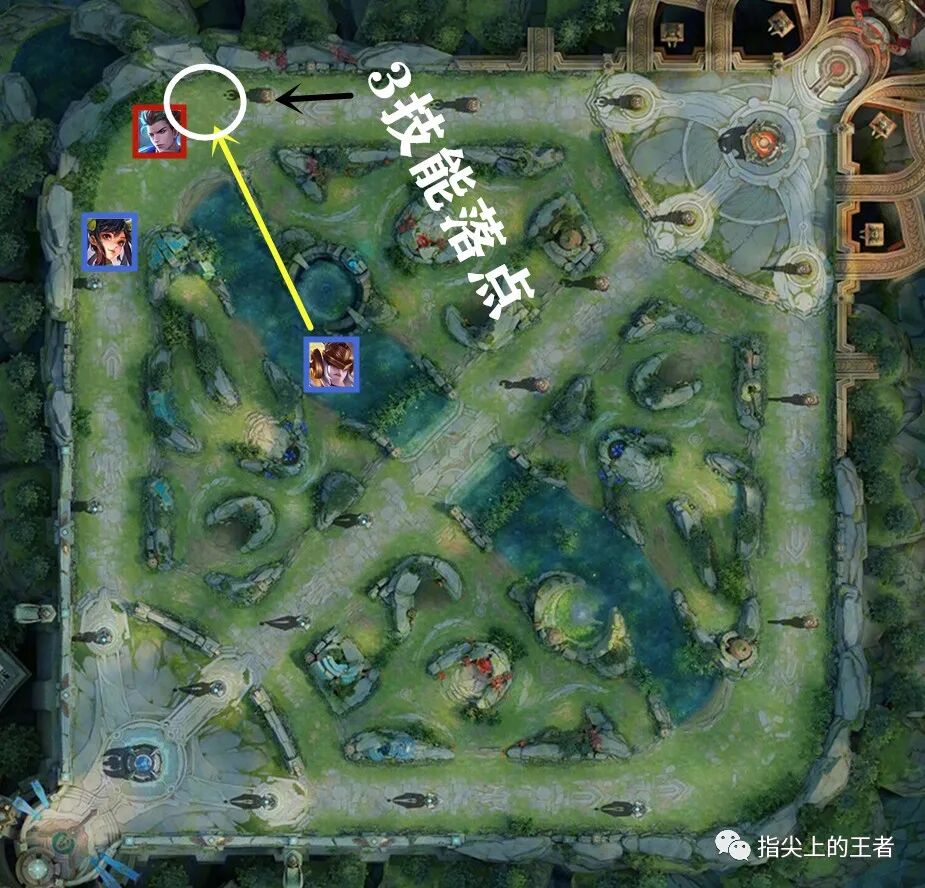 那么有人不服,女娲的3技能哪里那么容易中呢?实际上女娲抓边的能力非常厉害,因为3技能的特性,可以在很远的位置直接定点传送,那么我们就可以在河道处直接去进攻边路,一旦射手走出防御塔,我们可以叫上队友“发起进攻”,而三技能丢在敌人逃走的路径上,记得是路径,而不是头上,想要退,就要吃控制和伤害,不退,会被前后夹击,非常容易拿到一血。