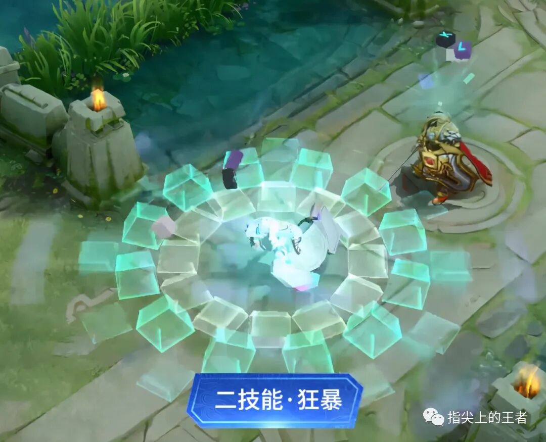 2技能的特效炸裂,这个皮肤的主打颜色是青色,地板炸裂的特效蔓延开,看起来夸张到不行。