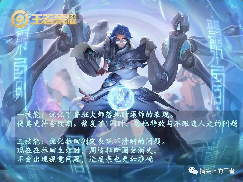 这次对鲁班大师的调整就是视觉上的调整,13技能会更加清晰,一闪特效留在原地的问题修复了。
