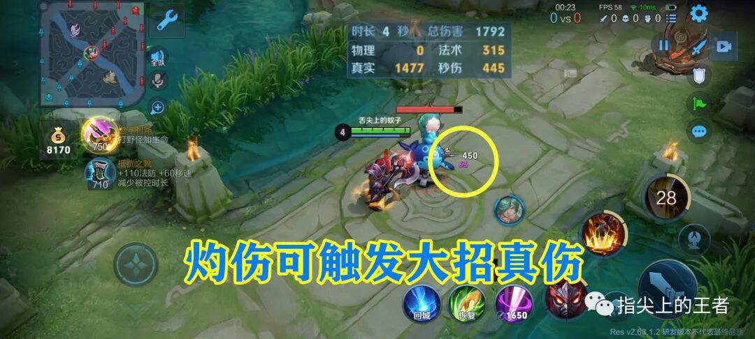 首先,买了巨人之握加上红莲斗篷,典韦开大后会出现一秒烧两次,触发两次真伤的情况,但是这个效果并不是稳定的,下边的动图就能清晰的表达。