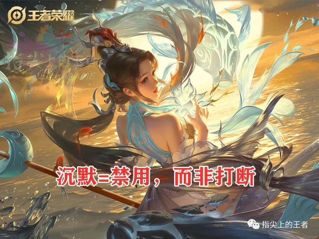 沉默,在游戏中指短时间无法释放技能的一个debuff,在王者荣耀中有多种技能,英雄本身的技能、召唤师技能、装备技能、治疗以及回城,而沉默的定义本该是在短时间内禁止使用这些技能,而附带的额外效果于对抗方而言这个游戏体验极差,而打断技能这个事本身就不是正八经的机制问题,甚至有点不合理。