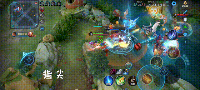 像这一波,我在上路清完兵线后,立即来到他家的红野区等待,如果此时是个脆皮来守塔,那么就利用大招加速,2技能减速,之后1技能扫射秒杀,没有位移的英雄是必死的,这也是蒙犽打无位移英雄好打的主要原因。