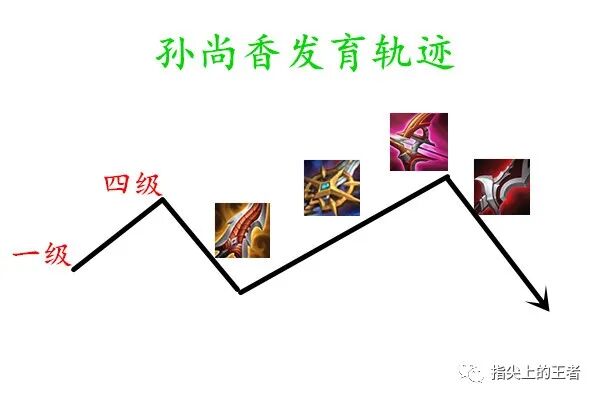 这个版本和其他版本有什么不同呢?几乎所有的射手发育速度都是线性增长,有的达到极限后迅速滑坡,比如李元芳,而孙尚香的则有点怪,四级前强度本身在一个很高的阶段,但是四级后会急速下降,在无尽加宗师之力之后才开始提升,因此这段时间是孙尚香的羸弱期,整整两件大件装备的差距。