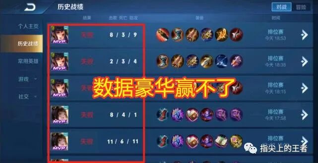 大家好我是指尖,王者荣耀赢下一场比赛靠的是推塔推水晶,有人吐槽,为什么我的数据这么好看,却总是败方MVP?为什么总是赢不下比赛?努力上分却连败,想要混一局却轻松获胜,我是不是被系统针对了?