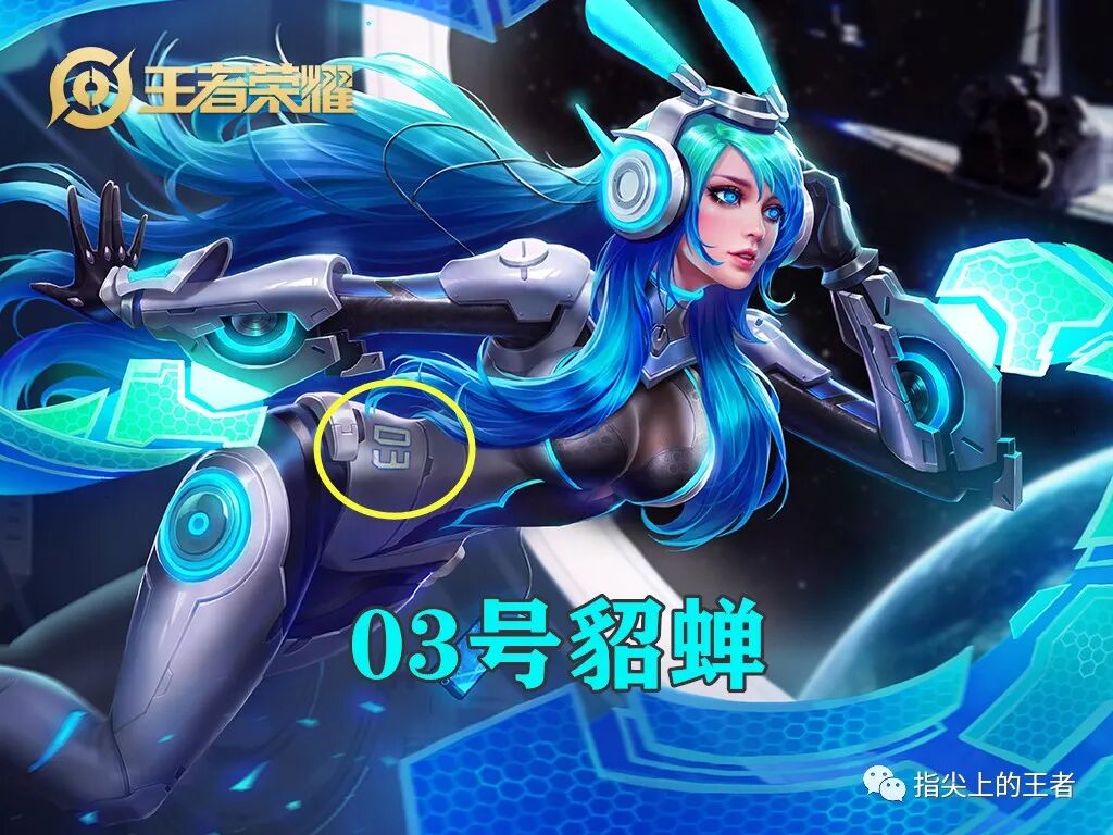 “03”号貂蝉,在海报的腰部位置得到体现,这个皮肤本身就属于类似太空系列的,出场动画一个太空舱,之后貂蝉无重力出现,所以很契合宇宙秘密 战队的这个ip。