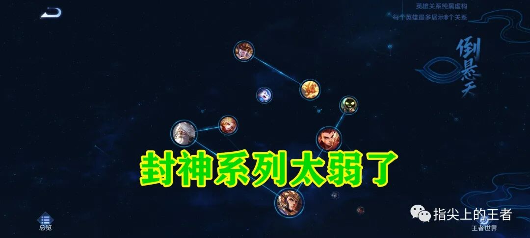 相较于魏蜀吴,封神系列的英雄就显得可怜了,盘点了一下封神系列的英雄,在王者世界中这个阵营被称为“倒悬天”,分别是杨戬、姜子牙、哪吒、妲己、女娲、太乙真人六个封神英雄,也有并不属于封神榜中的英雄盘古、梦奇,可以看到,这个阵营中的英雄不少,但强度只能说一个比一个惨。