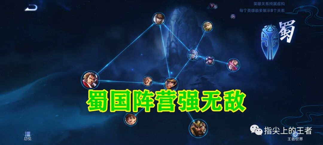 大家好我是指尖,王者荣耀中的英雄其实都是分阵营的,目前来说,蜀国的英雄应该是最多的,刘关张,黄忠刘禅马超赵云阿古朵等等,可以说这个阵营的英雄大多都是热门,或者强度极高,算是王者荣耀中的明星阵营了。