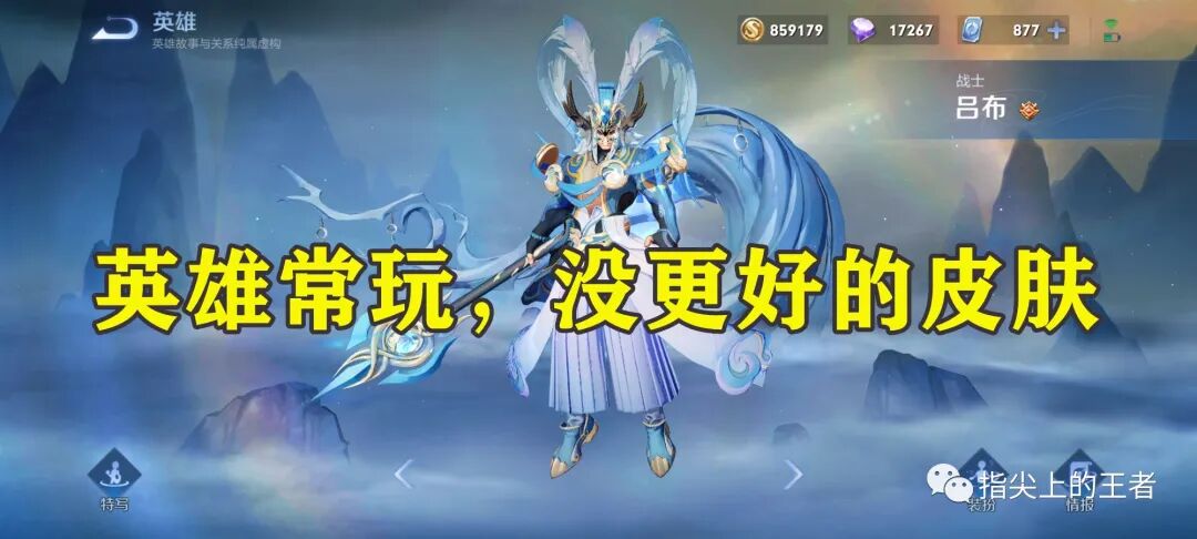 首先,新年限定的四个英雄,诸葛亮我有教师皮,且时雨皮肤没有那种心动的感觉,加上英雄现在不太玩,所以就没考虑,公孙离我英雄根本就不玩,自认手残的我没有信心能玩好这个英雄,所以直接放弃,剩下的牛魔就更是如此,我很少玩辅助,牛魔也不太喜欢,所以因为吕布没更好的皮肤,加上是常玩的,所以就买了。