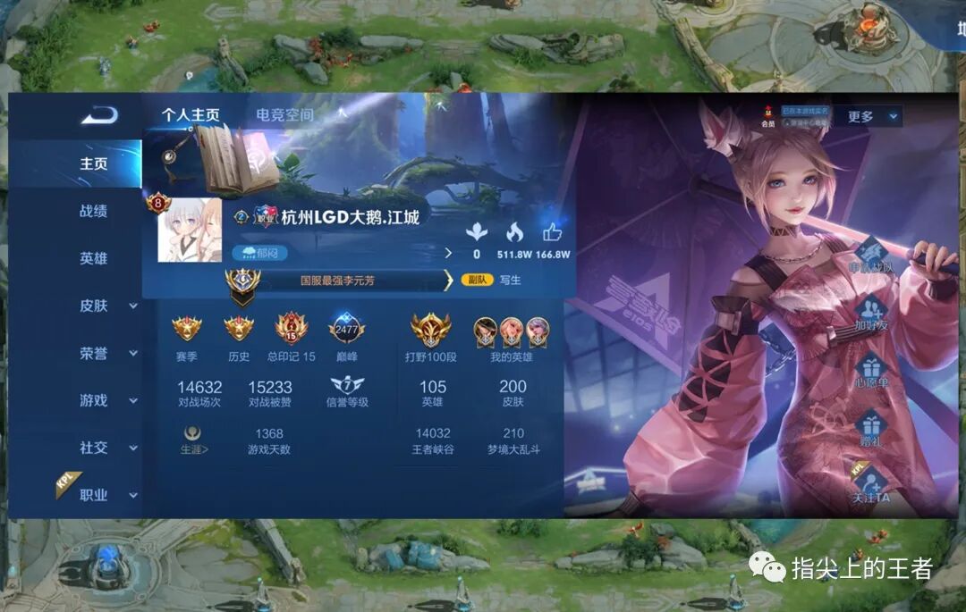 这id“让我独享经济”点开电竞生涯是黑的,我不知道是谁,后来有人提醒我这是QG的向鱼,真的有点猛。