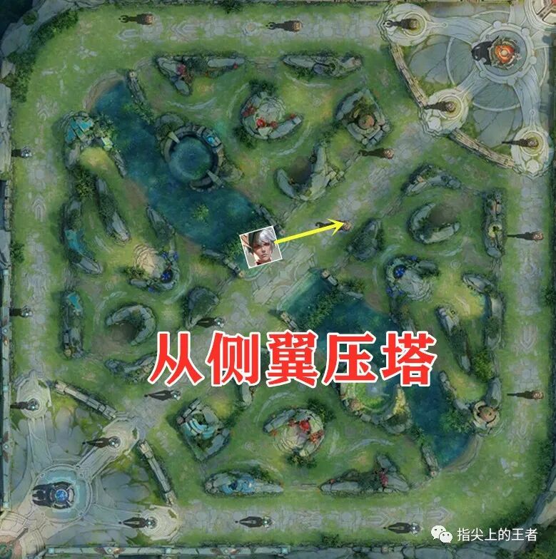 六、压塔打斜线,兵线进塔自己从侧翼开大,命中率更高,给足队友推塔的空间。