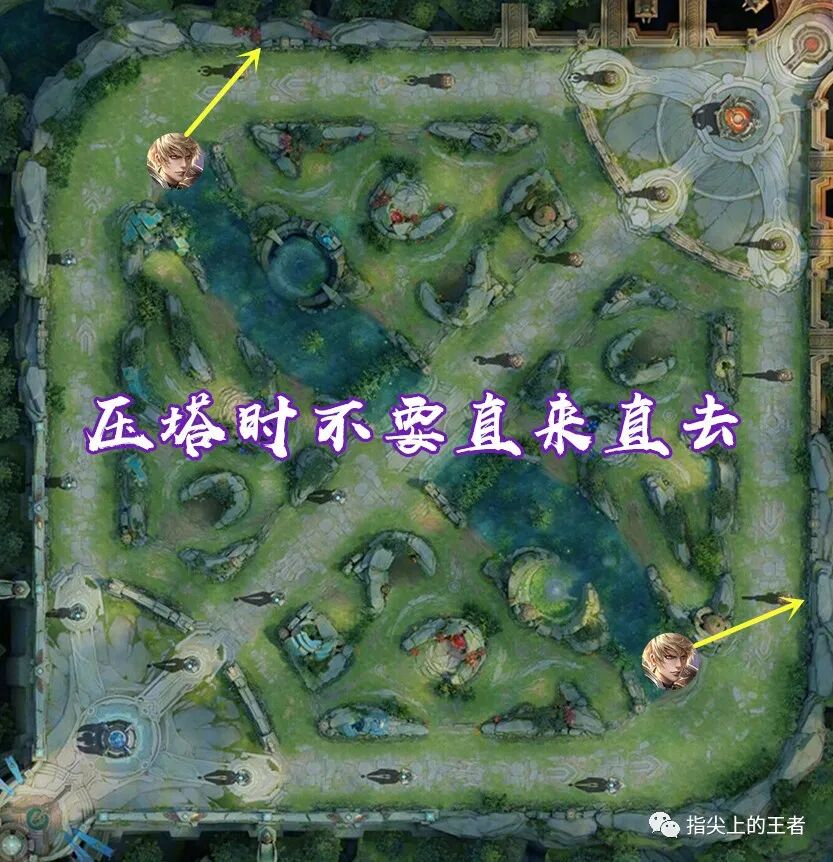 压塔的角度不建议直上直下,用扫射的侧面压制,那么敌人的可活动空间就会更小,甚至完全把敌人隔离在兵线之外。