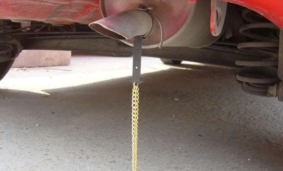 而车身会产生静电,主要是因为汽车和空气尘埃产生摩擦,如果车上还有一些毛绒类的装饰品,比如座椅套、方向盘套,那么就会更容易产生静电。而且汽车和地面接触的只有四个轮子,车轮又是橡胶制品,导电性非常差,就会导致车身上的静电无法排出,长时间聚集在一起。而为了避免上车下车时开车门被电,有经验的师傅,便想出了一个非常有效的方法,那就是在排气管上绑一根可以导电的带子。这根带子并非普通橡胶带,里面含有金属粉和碳粉之类的导电物质,绑在排气管上和地面连通,车上的静电就会被带子转移到地上。