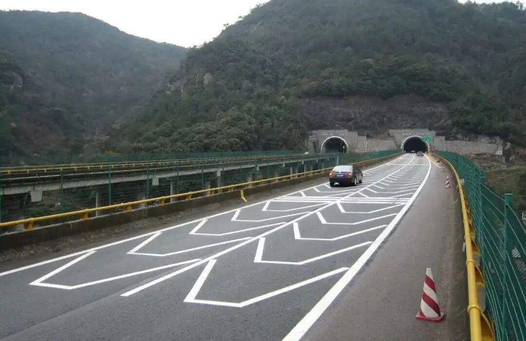 第2条是错视觉标线。和车距确认线一样,这类标线同样出现在高速上,不过从名称上看,确实不知道是做什么用的。错视觉标线一般设置在高速隧道前,作用是提醒车主们前方是隧道,要提前减速慢行。而且周围同样有限速指示牌以及摄像头,如果车速过快,被拍下来就会按超速处罚。所以,看到车距确认线,车主们一定要及时减速。