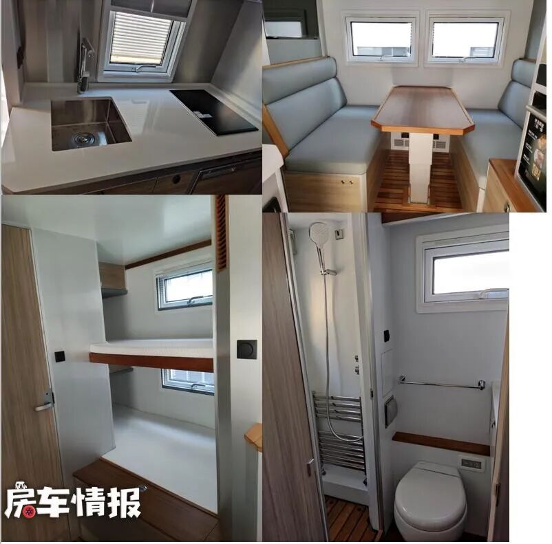 车内生活区则提供了厨房、卡座沙发休息区、独立卫生间等基础设备,只不过想要睡觉的话需要将座椅和餐桌拼床,但也基本上能满足所需。