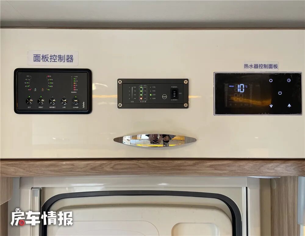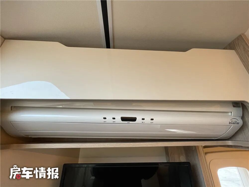 在电力系统方面,这款房车也是配备的非常足,3000W逆变器、820Ah锂电池、800W太阳能电池板,出厂自带10度电,可以满足日常家电的用电需求,除此以外这款车还配备了大宇mini洗衣机、旌航专用分体式空调等。