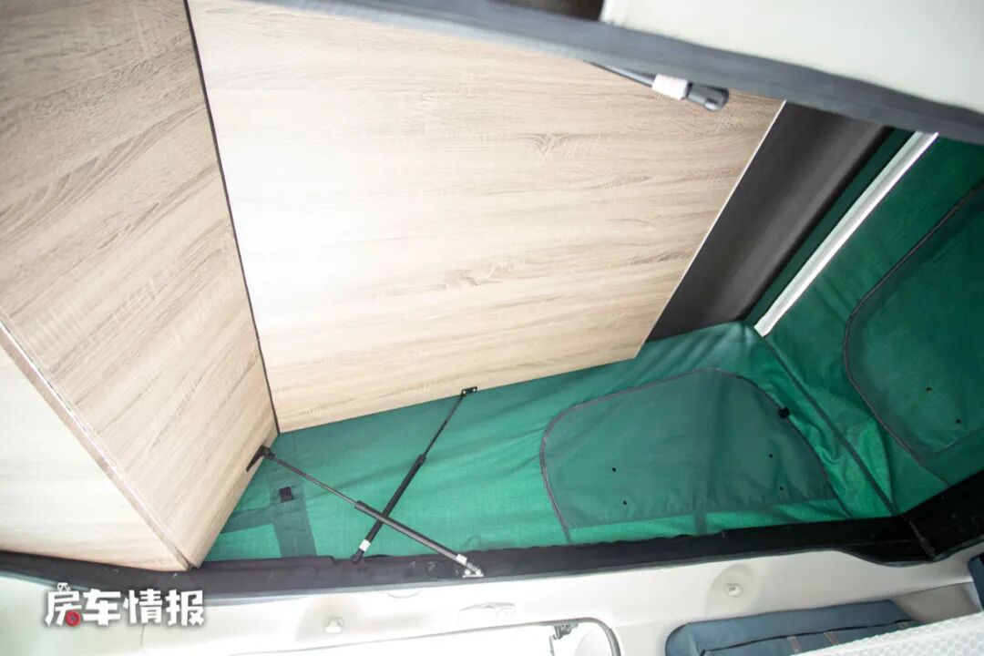 除去沙发床外,在电动升顶内,还提供了一张尺寸为2000*1200(mm)的双人床,即使不使用床铺的时候,也可以打开电动升顶,增大内部的使用空间,总体来说设计还是很合理的。