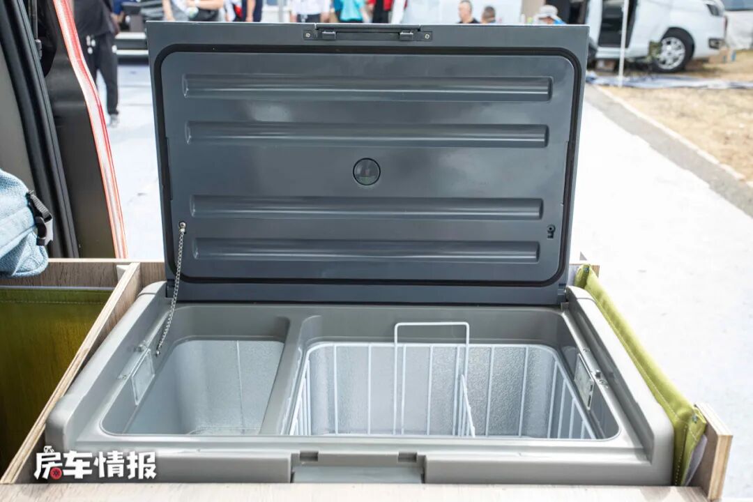 全车没有提供洗漱区,但是在尾部提供了一整套的可抽拉的厨房设备,包括便携式燃气灶、车载冰箱、洗菜池等,平时打开后车门在这里做饭还是很方便的,即使有油烟也不会影响到前面的车厢。