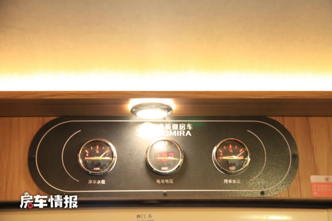 内部设计的非常新颖,那么它的水电方面如何呢?在电路上,这款房车搭载了一台3000W的充电逆变一体机,并配备了400Ah的磷酸铁锂电池、在车外还提供了专用外接电源充电口,车内则提供了4个220V电源插座、2个USB充电接口和多个照明灯。水路方面,全车提供了120L的净水箱和50L的灰水箱,并配备了一台房车专用水泵过滤器。